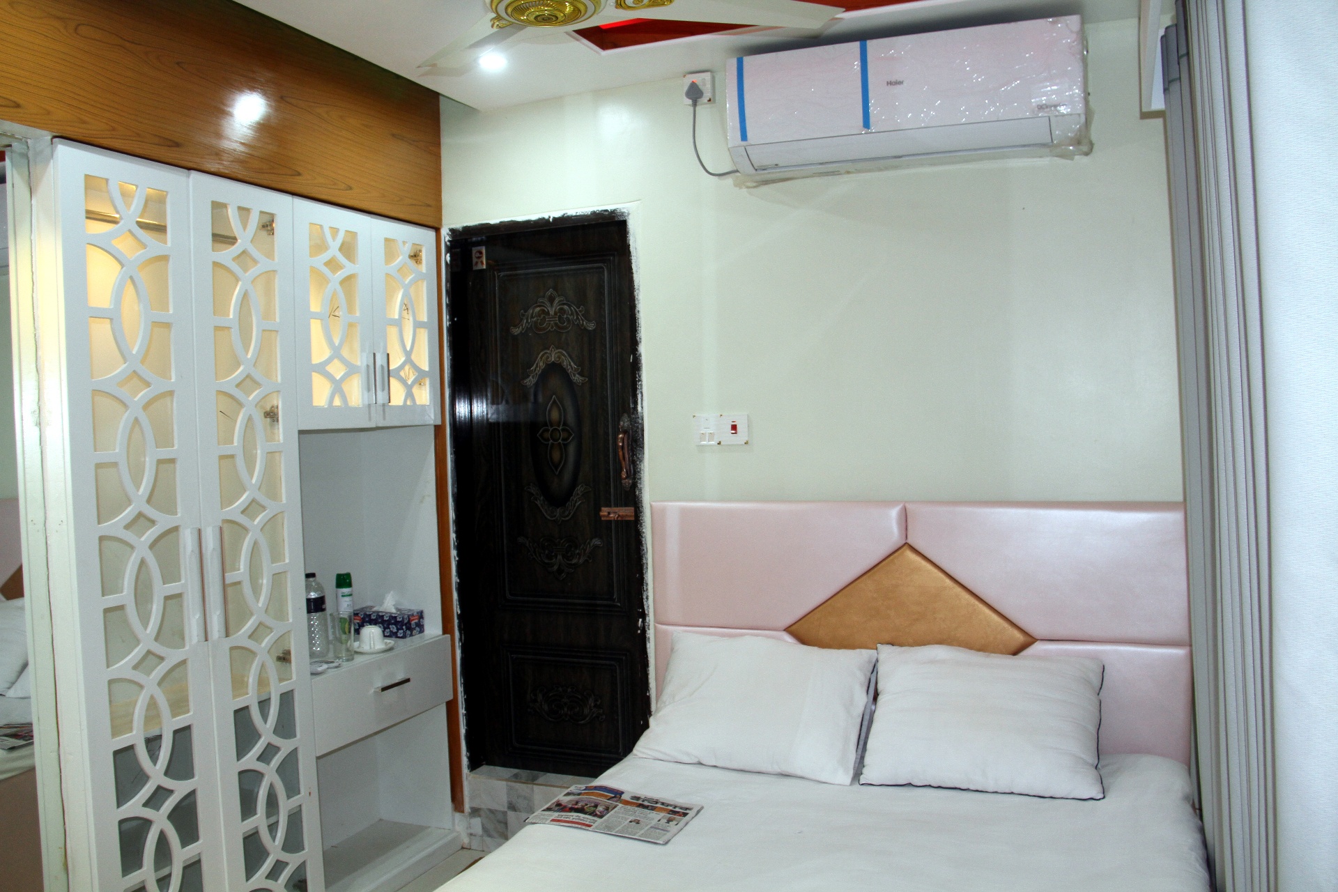 Standard room with one master bed, AC, free Wi-Fi, and attached bathroom. Includes soap, shampoo, tissue, and towels. Suitable for two guests.
